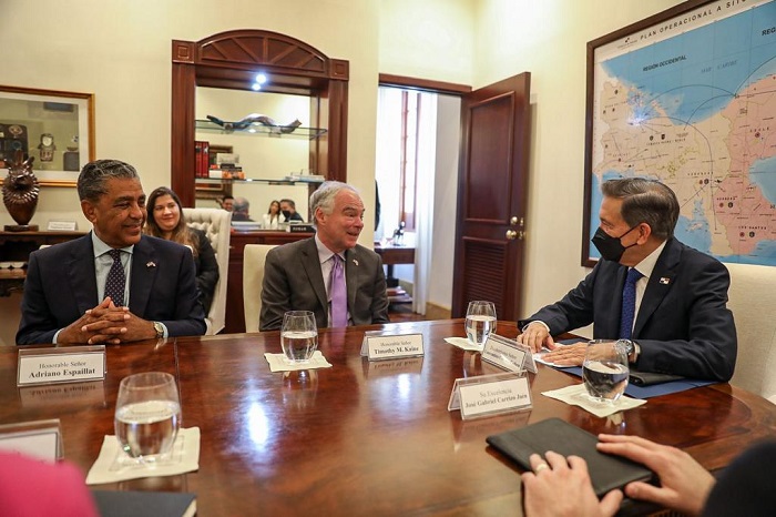 El presidente de la República, Laurentino Cortizo Cohen se reunió esta mañana con el senador Timothy Michael Kaine, candidato a la vicepresidencia de los Estados Unidos junto a Hillary Clinton en 2016, y el congresista Adriano Espaillat Rodríguez con quienes abordó temas de interés entre Panamá y Estados Unidos en especial el flujo migratorio.